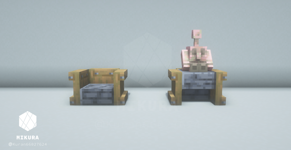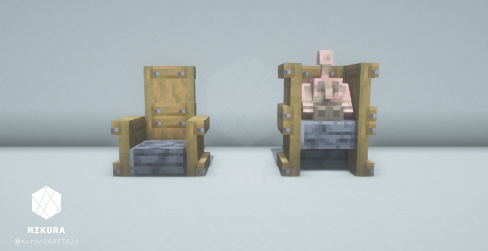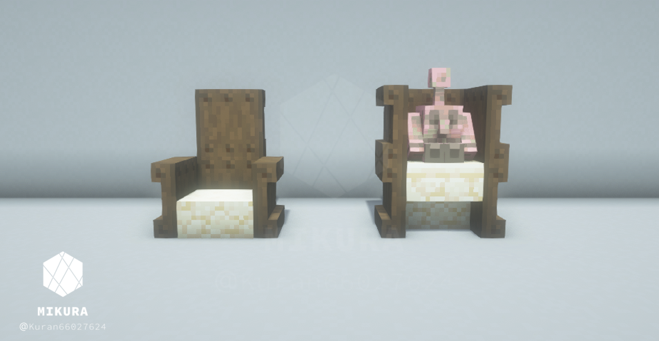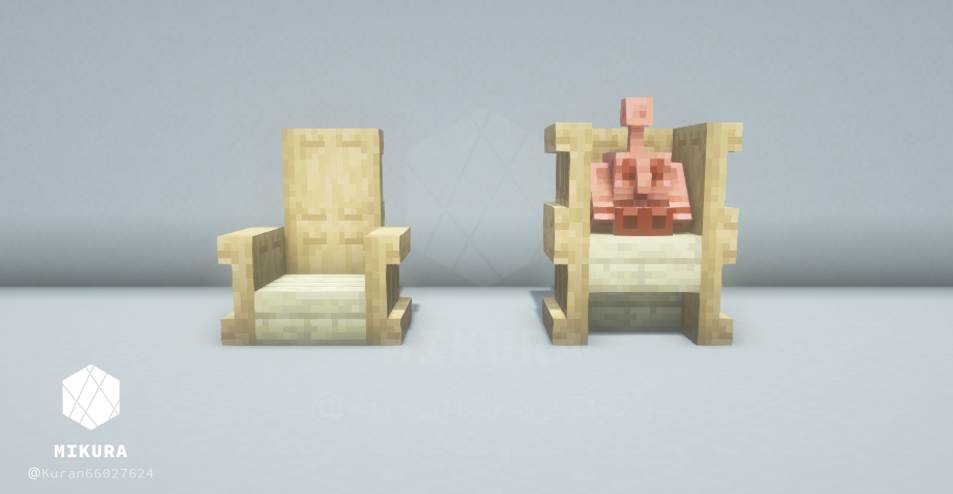 ちなみに他のシンプルな椅子のアイデアはこちらでもご紹介しております!【Minecraft】椅子の作り方と派生まとめ