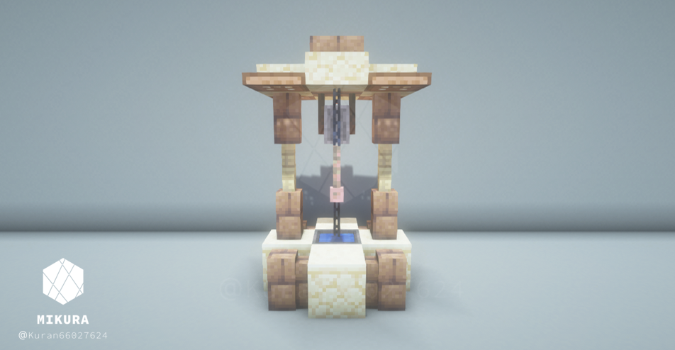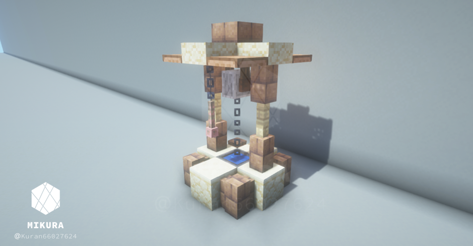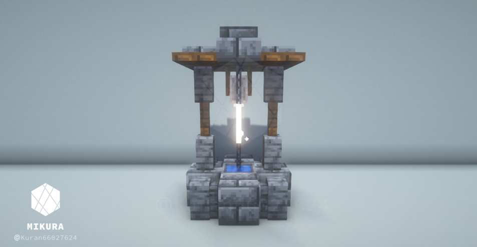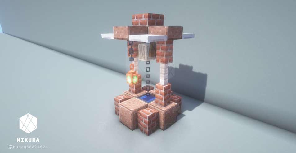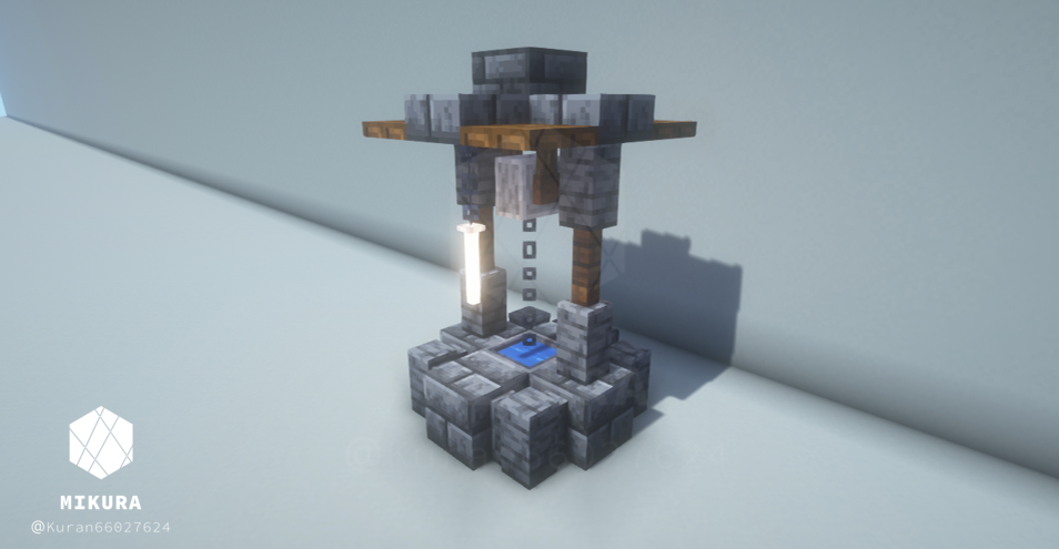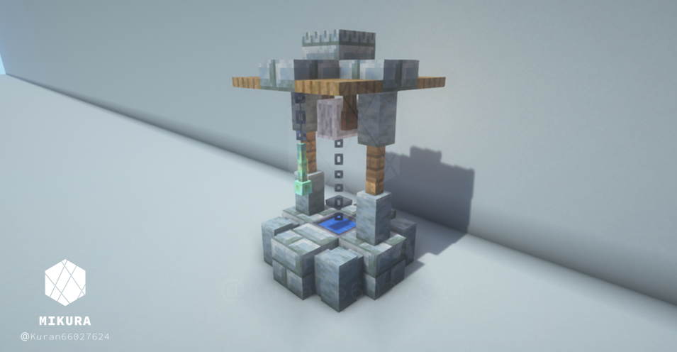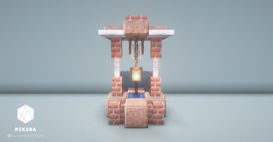 公園だけでなく庭の装飾としても使えそうなシンプルな井戸デザインです。光源としても使えるように、光源系アイテム(ランタン・エンドロッド等)を設置しています。
