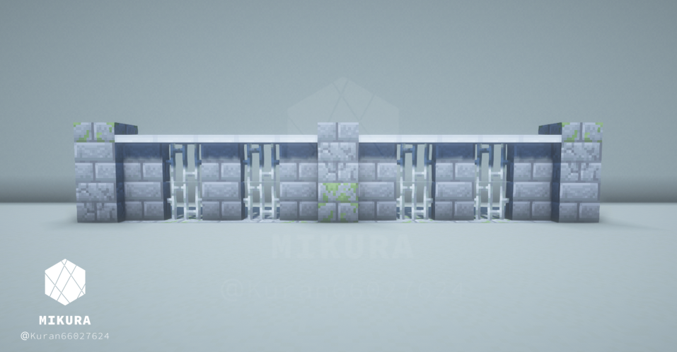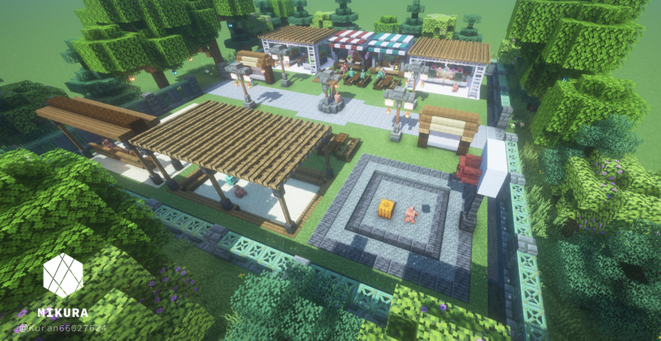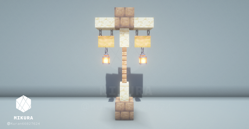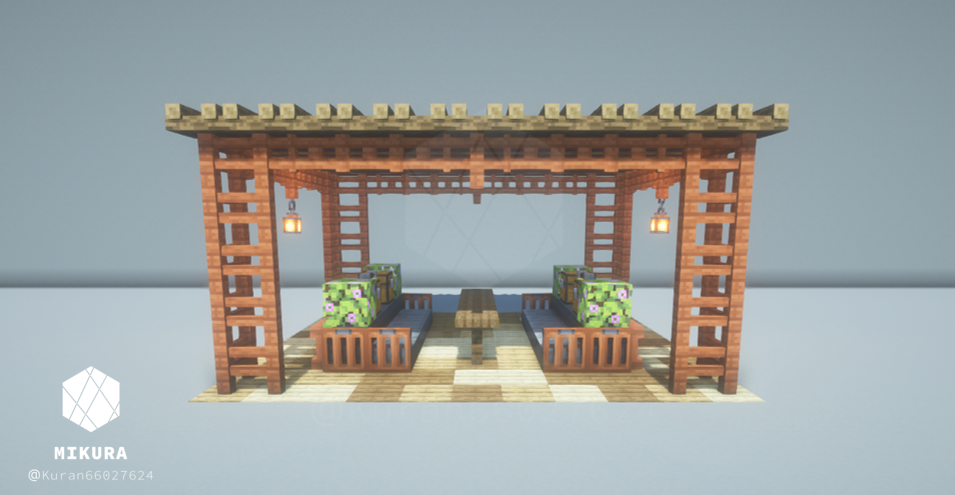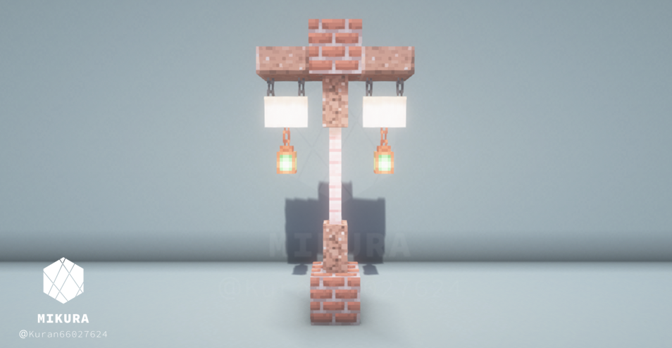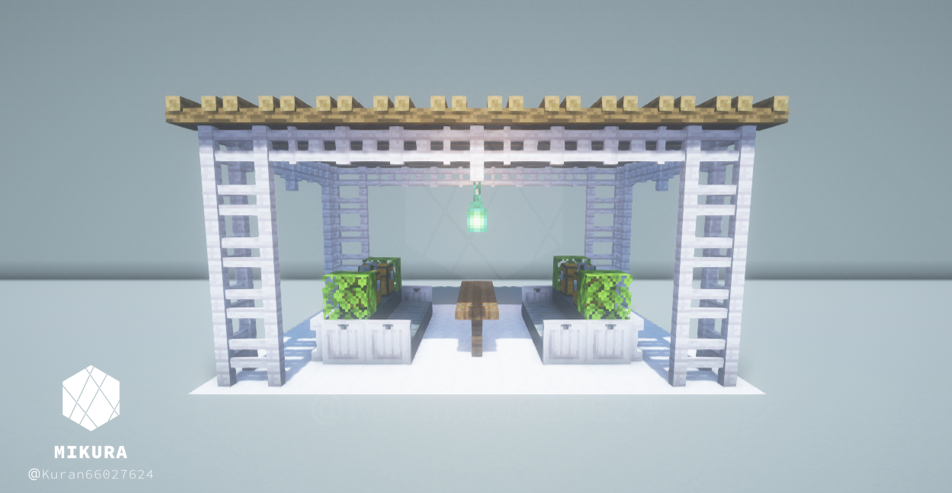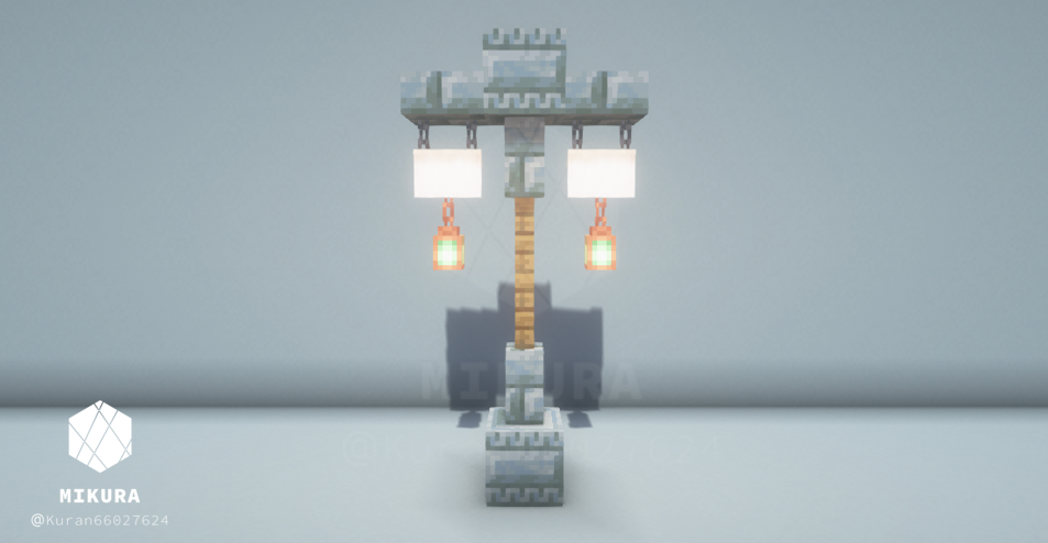 公園だけでなく庭の装飾としても使えそうなシンプルな井戸デザインです。光源としても使えるように、光源系アイテム(ランタン・エンドロッド等)を設置しています。