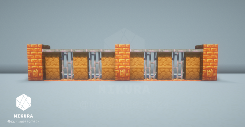 全てのパーツを43×43ブロックの正方形の中に収めた形が以下の通りです。細かい作り方は上記の動画でご紹介しております。