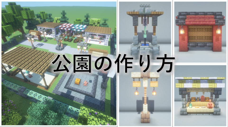 公園だけでなく庭の装飾としても使えそうなシンプルな井戸デザインです。光源としても使えるように、光源系アイテム(ランタン・エンドロッド等)を設置しています。
