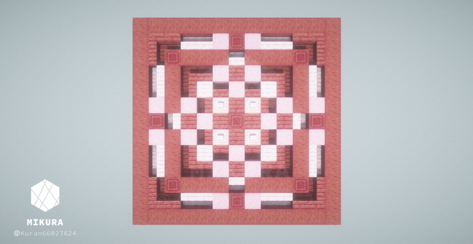正方形の床(天井)模様をデザインし、まとめました。サイズはそれぞれ11×11ブロック・13×13ブロック・7×7ブロックで奇数サイズでまとめています。お家のサイズに合った床デザインをお選びください。