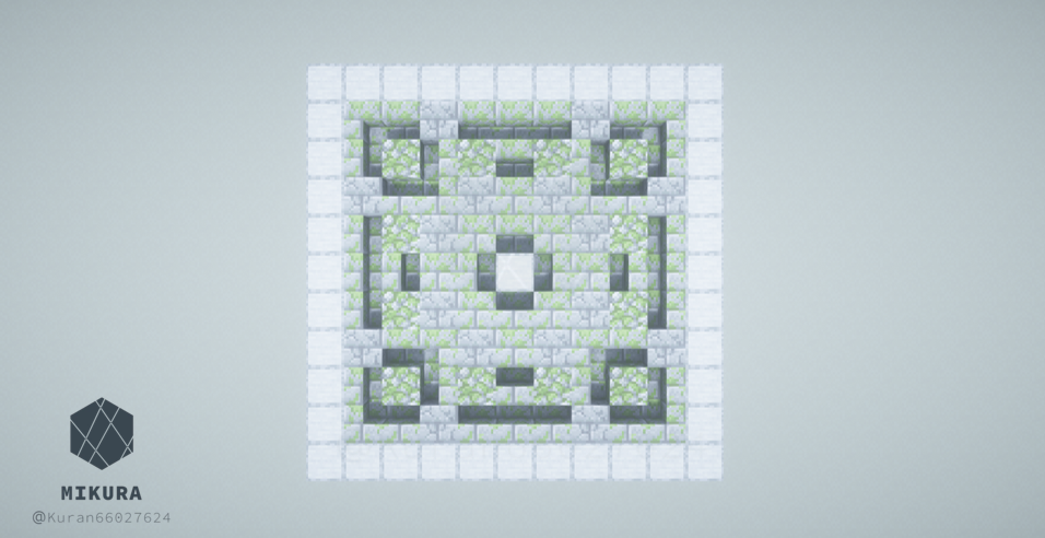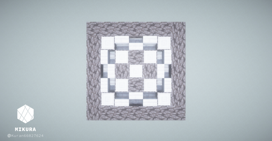 11×11ブロック分の中サイズで作った、滑らかな石で囲んだいかつい印象の床模様です。