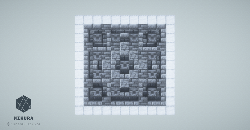 石レンガと滑らかな石、磨かれた安山岩を組み合わせた、遺跡のような見た目の床模様です。