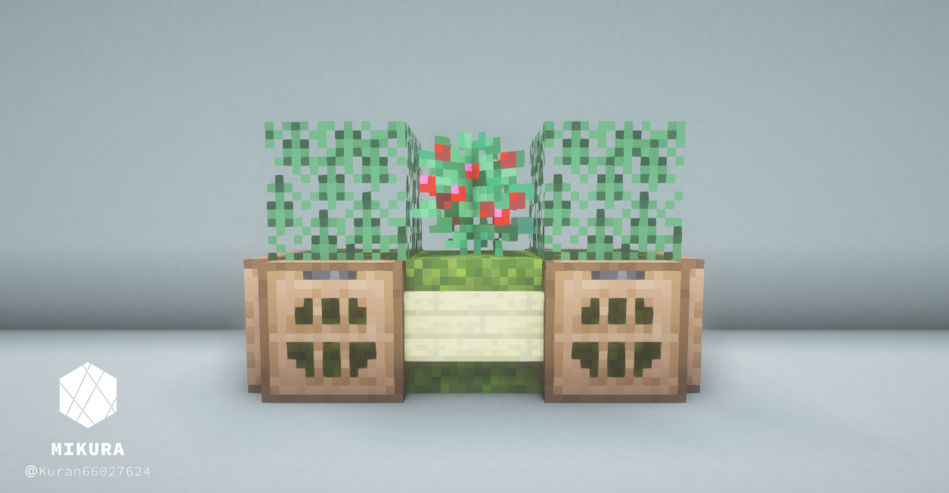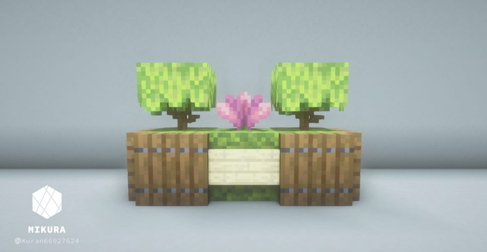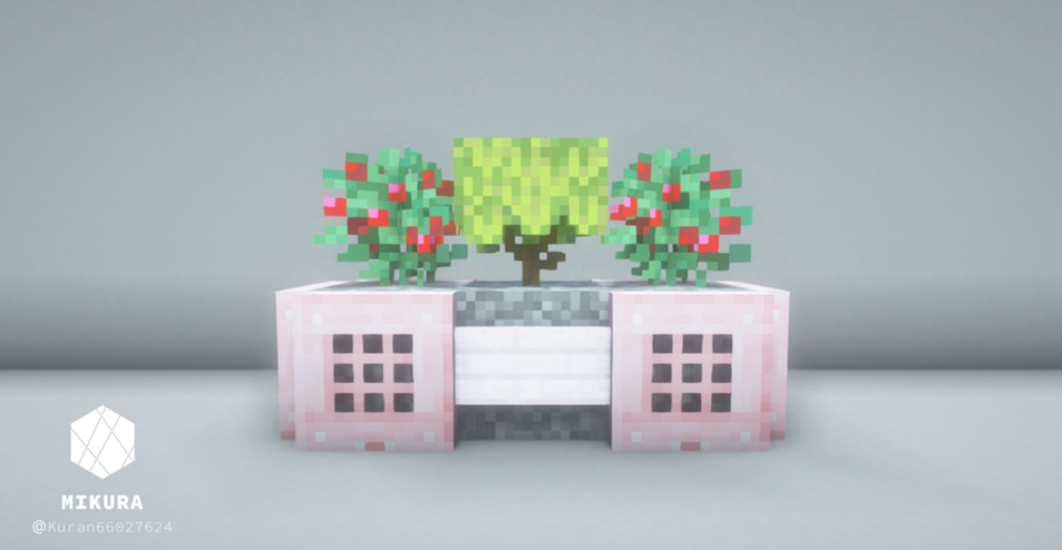 花壇装飾に便利な植木のデザインをまとめました。奥行約1ブロックの細めのデザインなので、ちょっとした隙間に置きやすい見た目だと思います。小さめのものを複数種類作っているので、街や花壇の雰囲気に合った見た目のものをお選びください。