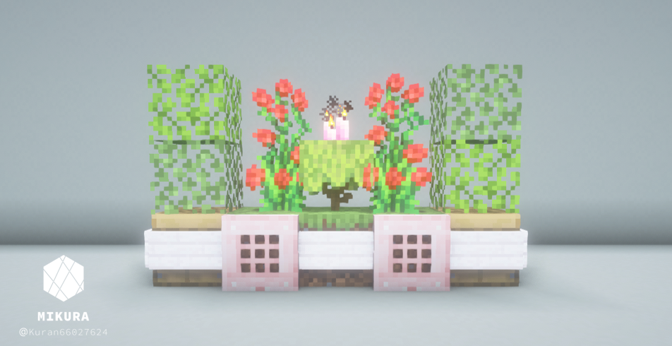 前回作った花壇デザインはこちらです。【Minecraft】外装装飾に使える植物アイデア