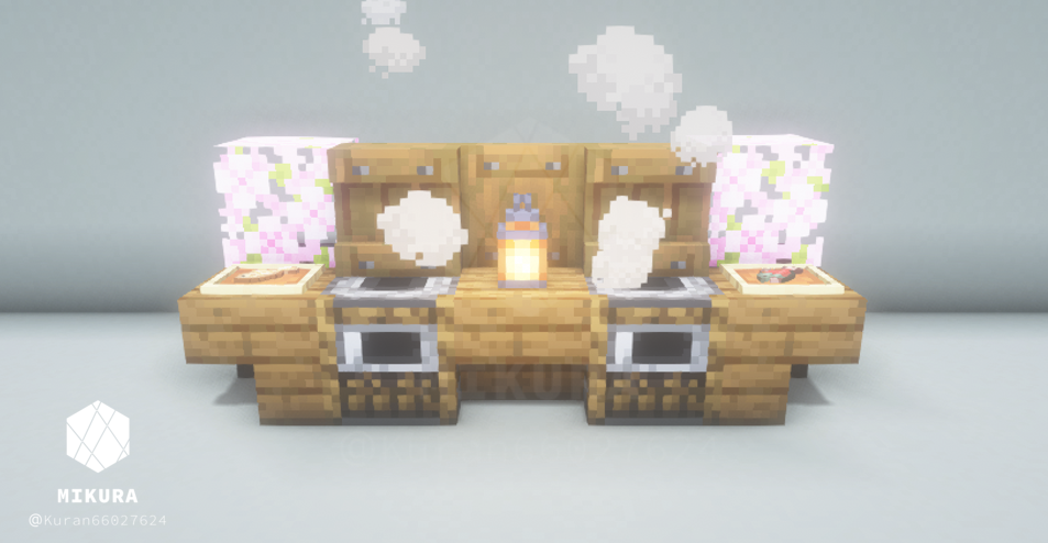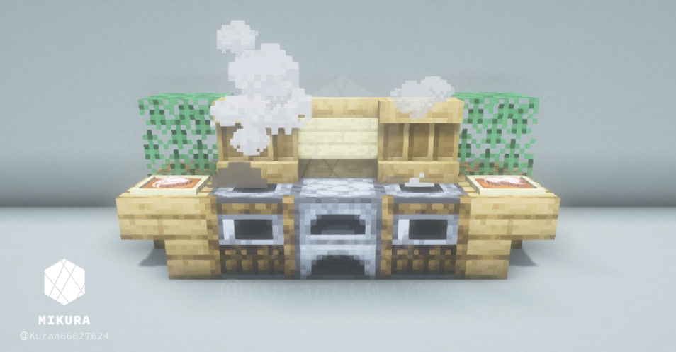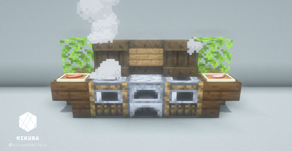 見えづらくなるのが嫌なので、このブログでは一時的に煙を消した画像にしています。下画像の要領でかまどの下に焚き火を仕込むと完成度上がります!