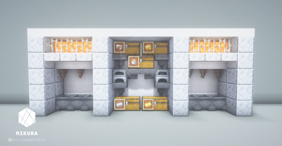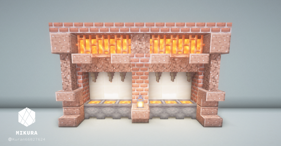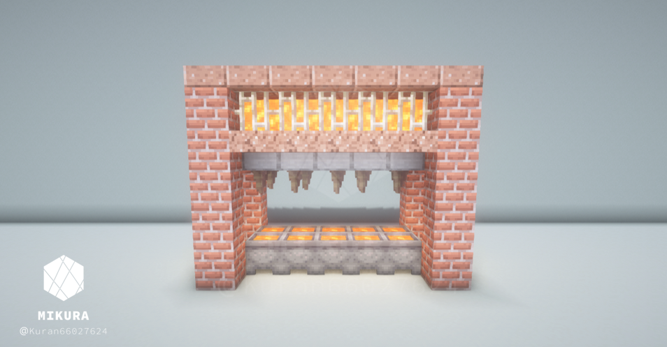 中央に自動かまどを作り、効率的に鉱石や食品を精錬することができるマグマ製造機のデザインです。
