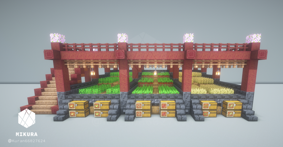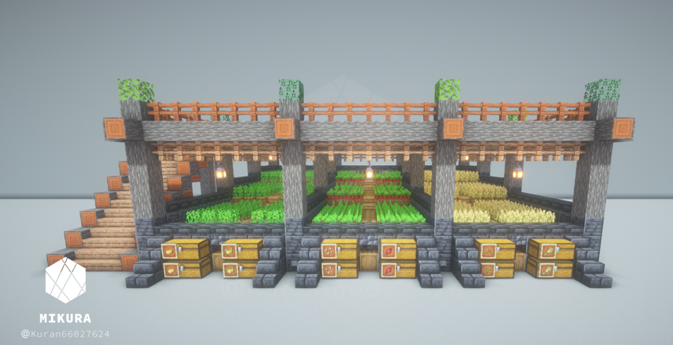 前回作った半自動畑のアイデアはこちらです。【Minecraft】水流式半自動畑の装飾デザイン