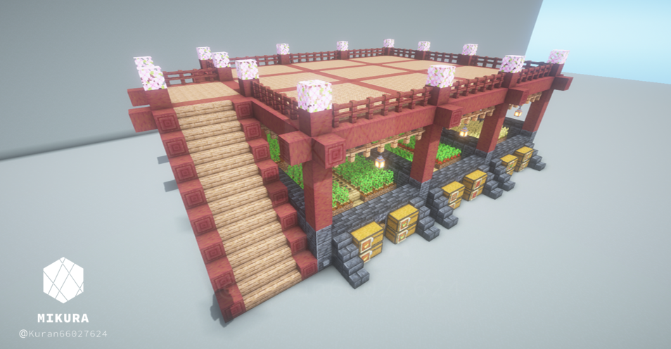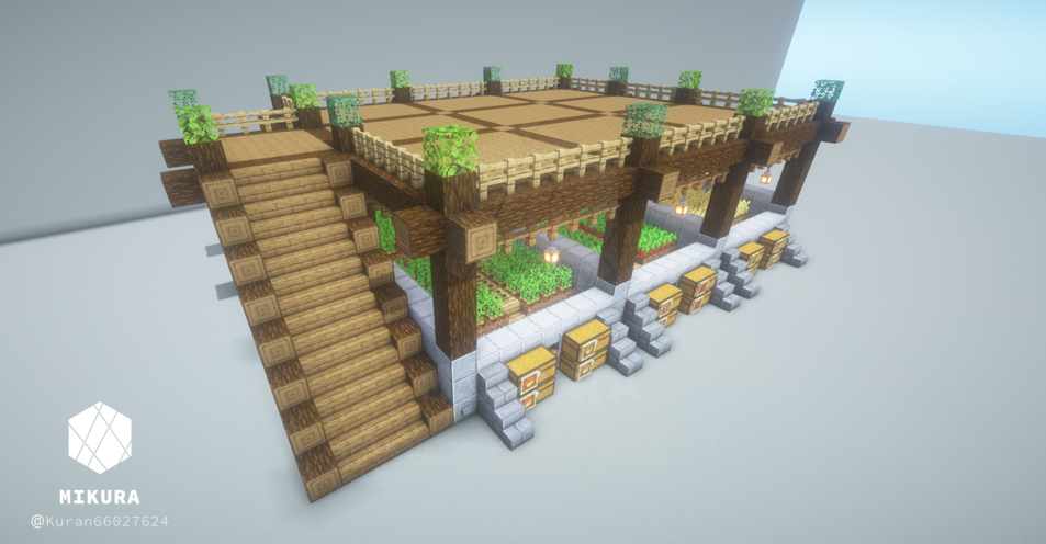 下の土台部分は深層岩系ブロックを、木材はマングローブとジャングルを組み合わせた畑のデザインです。