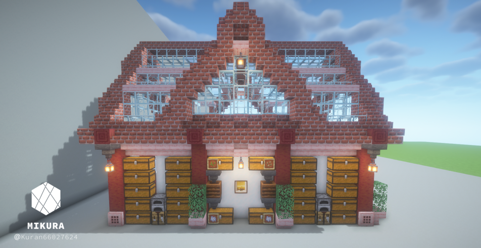 定番の水流式半自動畑をお家風に装飾したアイデアです。水流式半自動畑の作り方自体は動画でご説明しているので省略しております。サバイバルモードでむき出しの見た目をした畑を避けたい方におすすめのデザインです。