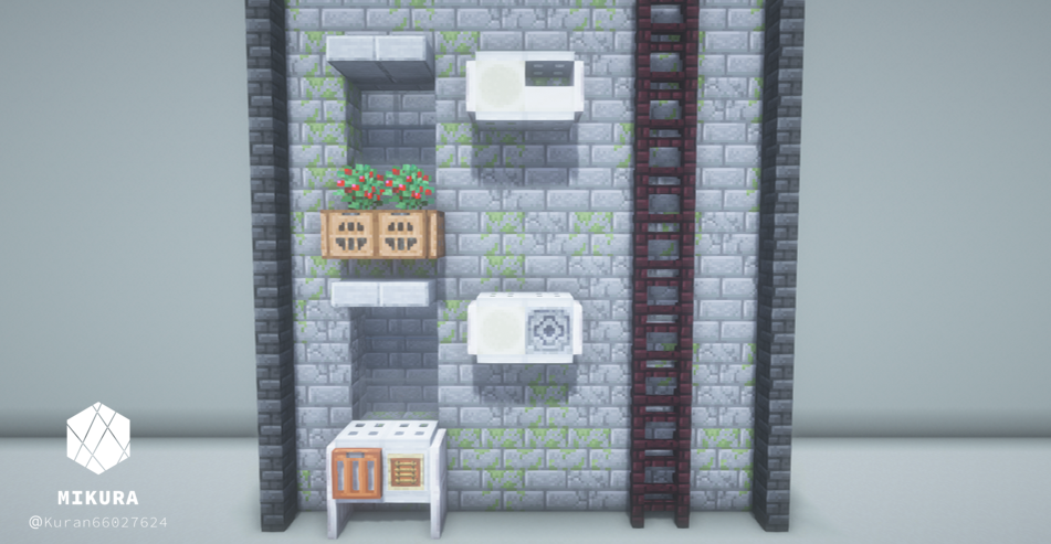 現代建築っぽい雰囲気にすることができる建築用パーツのアイデアをまとめました。エアコンの換気扇や自動販売機のデザインなど様々です。お好きなデザインのものを組み合わせてご利用ください。