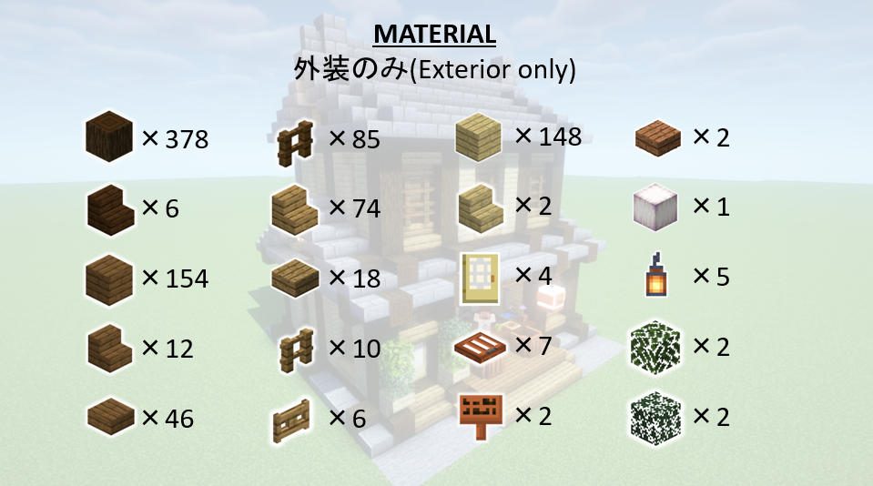 前回作った1チャンク建築はこちらです。【Minecraft】1チャンクに和風の家を作る①