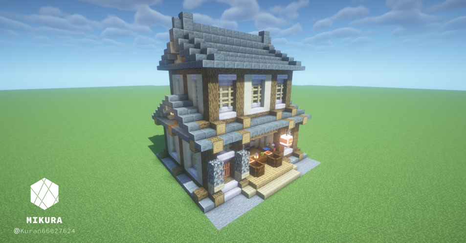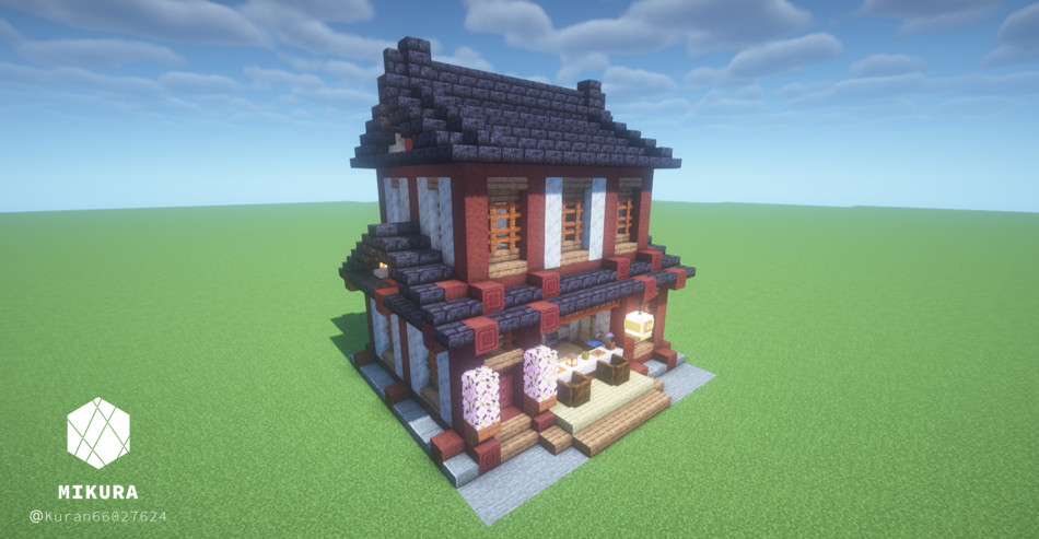 同じ作りの家を、色違いに5種類作成しました。該当するバイオームの建材に合わせて作ったり、街の雰囲気に合わせて建築するといい感じの雰囲気になると思います。