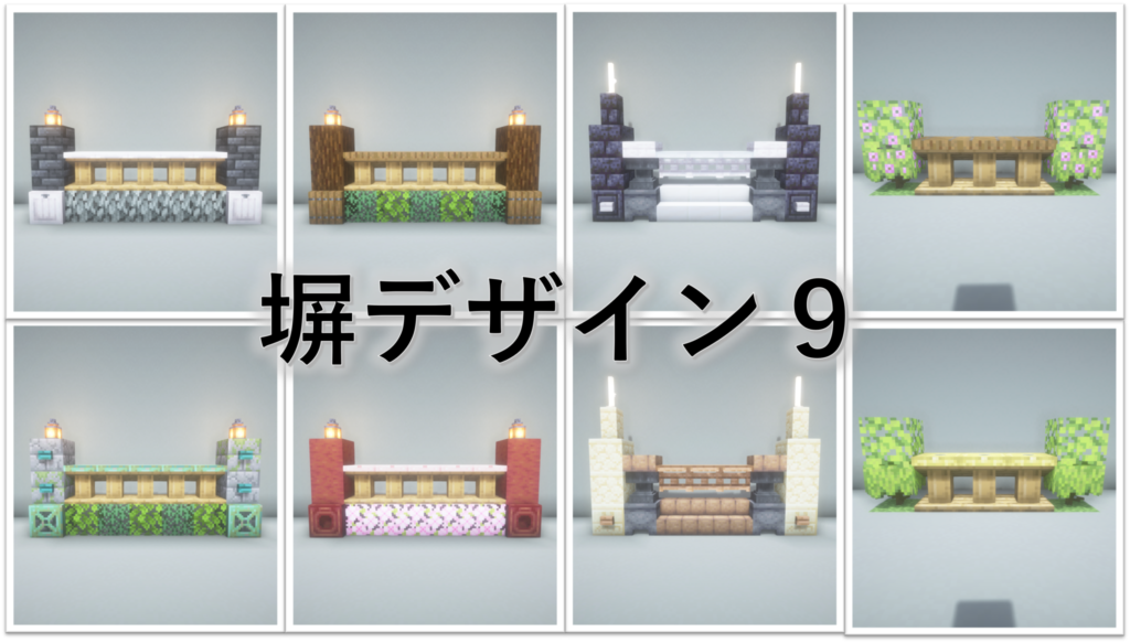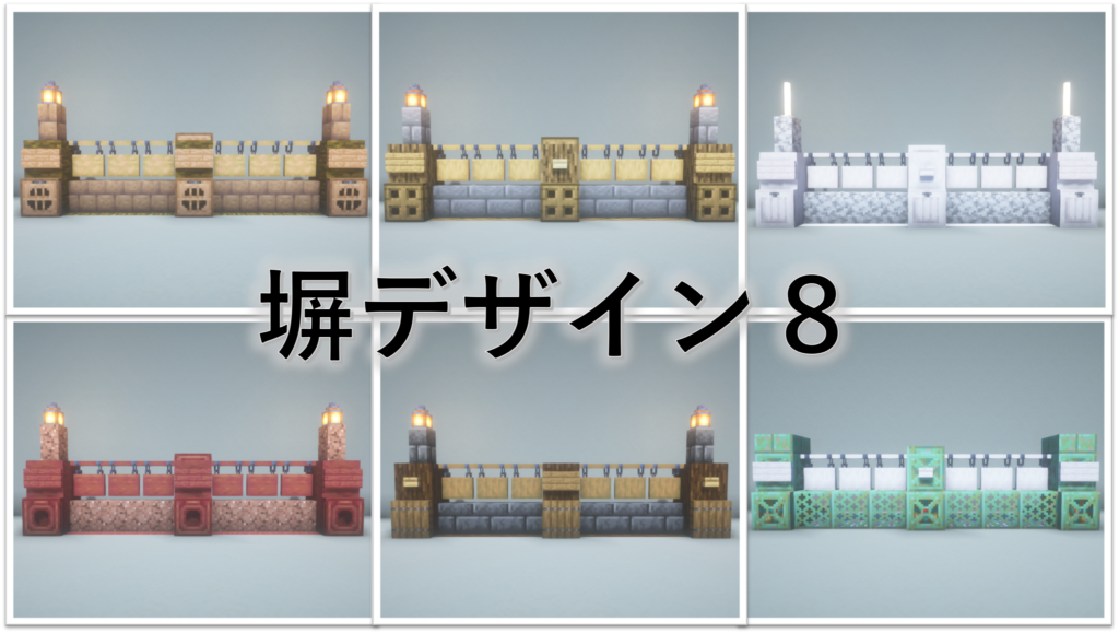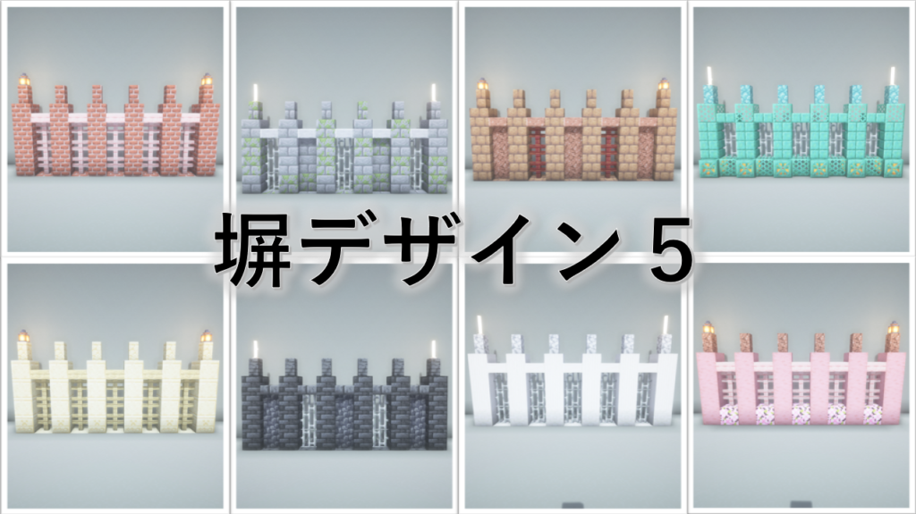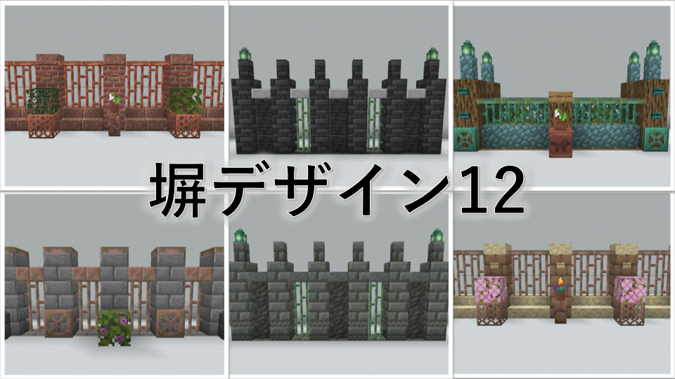 こちらの記事は、Minecraftの「塀デザイン」の記事が10記事以上となったため、比較用としてまとめたページです。塀のデザインに迷ったときの参考になれば嬉しいです。