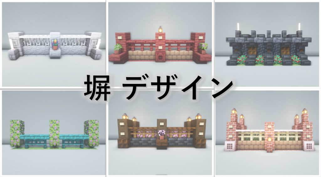 機能的ブロック(かまど・金床など)を使用した塀や、花壇を兼ねた塀など、特徴的な塀のデザインをまとめました。