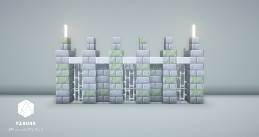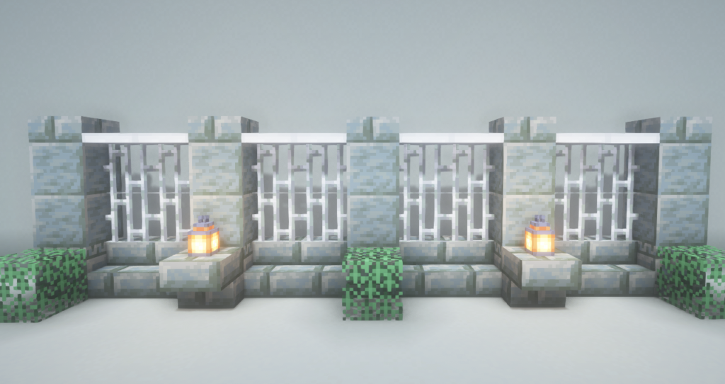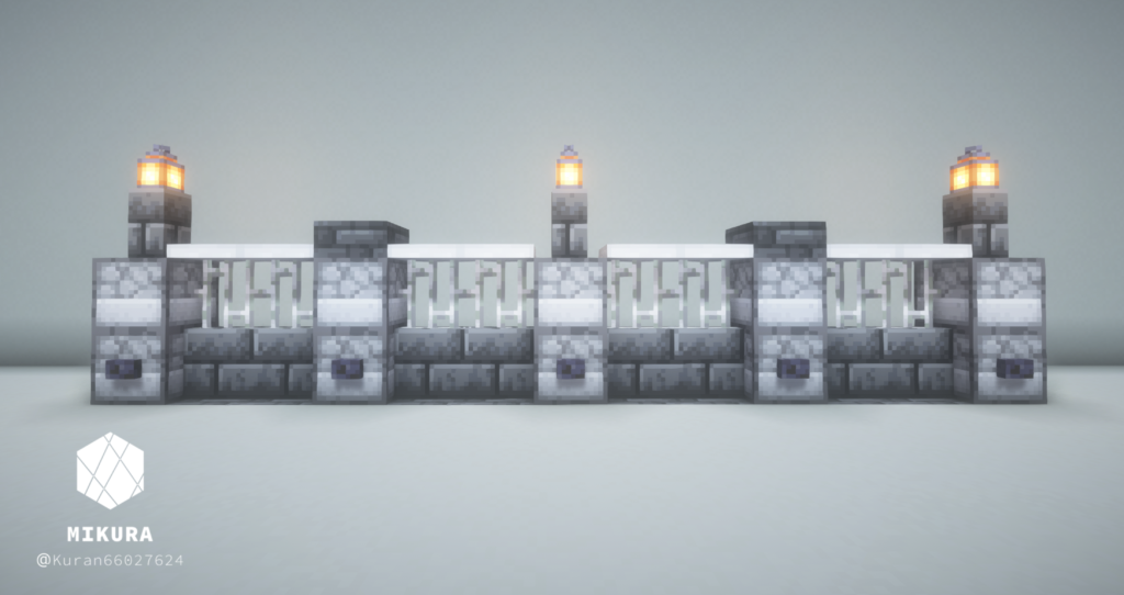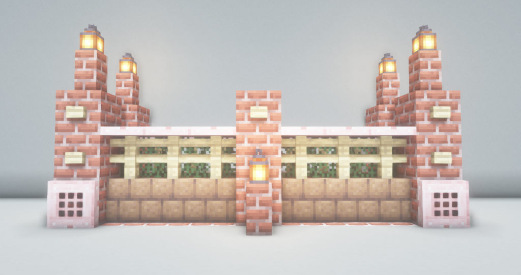 レッドストーンランプやシーランタンなどの、光源ブロックを隠して湧き潰しを兼ねた、塀デザインをまとめました。敵の進入を阻みつつ、光源として使うこともできる塀です。