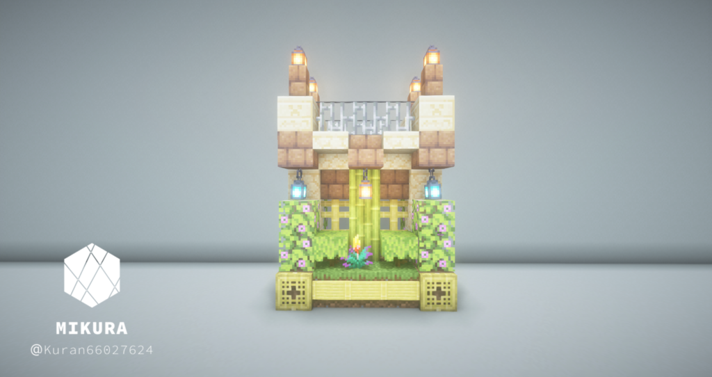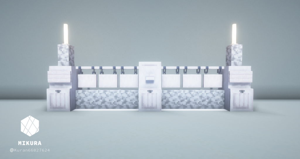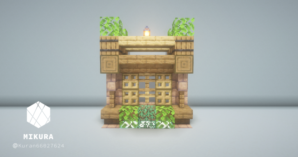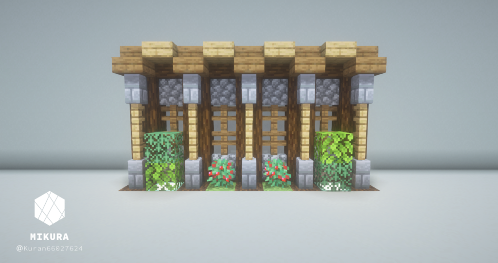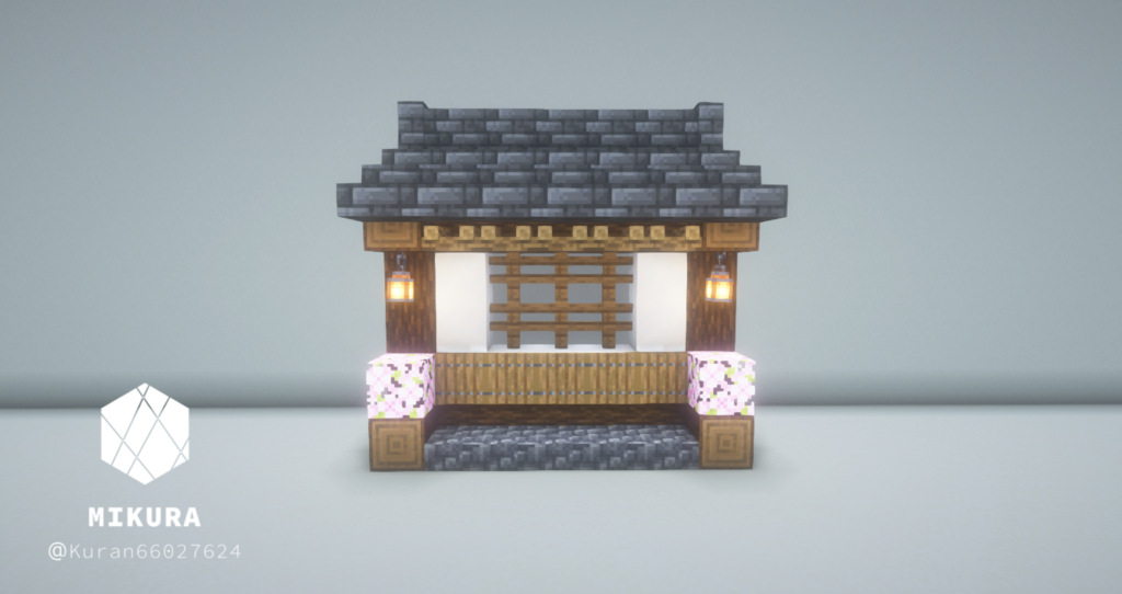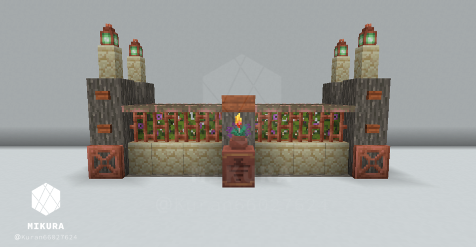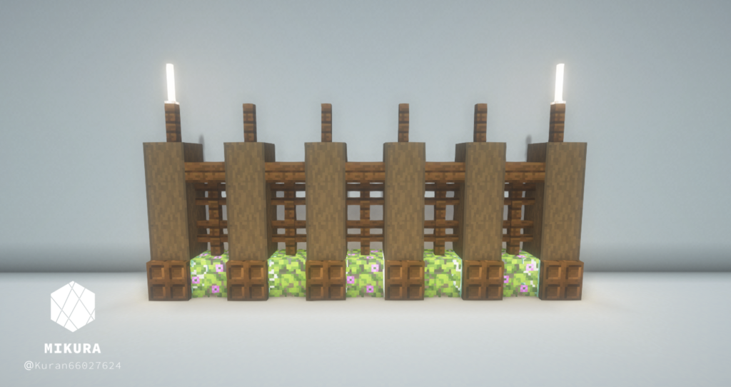 他の塀とは雰囲気を変えて、和風建築用の塀デザインをまとめています。別記事ですが【Minecraft】和風の門デザインと組み合わせると、よりいい雰囲気になると思います。