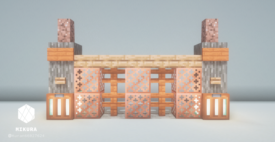 Minecraftバージョン1.21.10で追加された、銅格子をメインに使用した塀のアイデアをまとめました。