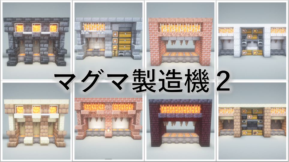 無限マグマ製造機の作り方と、装飾方法のデザインをまとめました。作り方は動画にて解説しております。サバイバルモードで遊ぶ際はとても便利な装置なので、序盤に作るのにおすすめです。