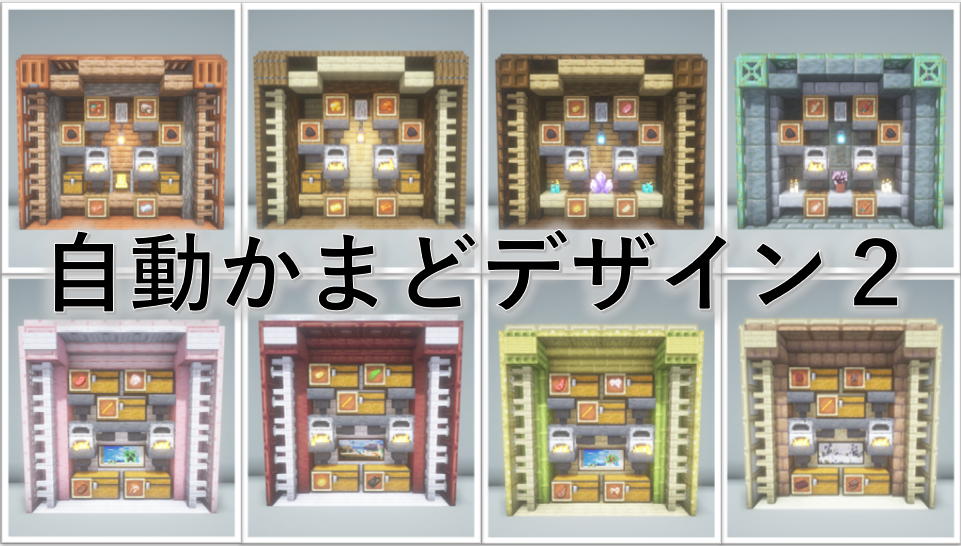 こちらの記事は、Minecraftの「自動系デザイン」の記事が10記事以上となったため、比較用としてまとめたページです。自動系のデザインに迷ったときの参考になれば嬉しいです。