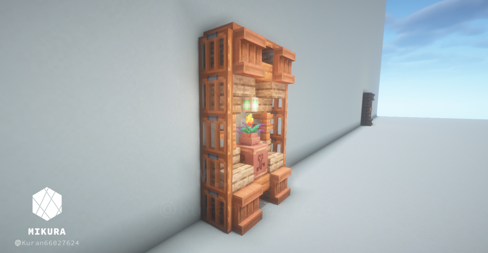 前回作った棚のアイデアはこちらです。【Minecraft】2×3の木製棚のアイデア