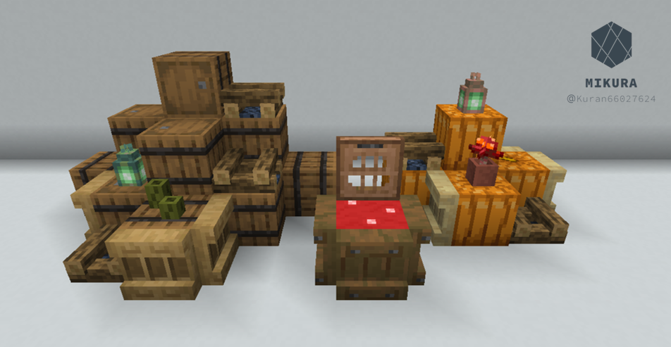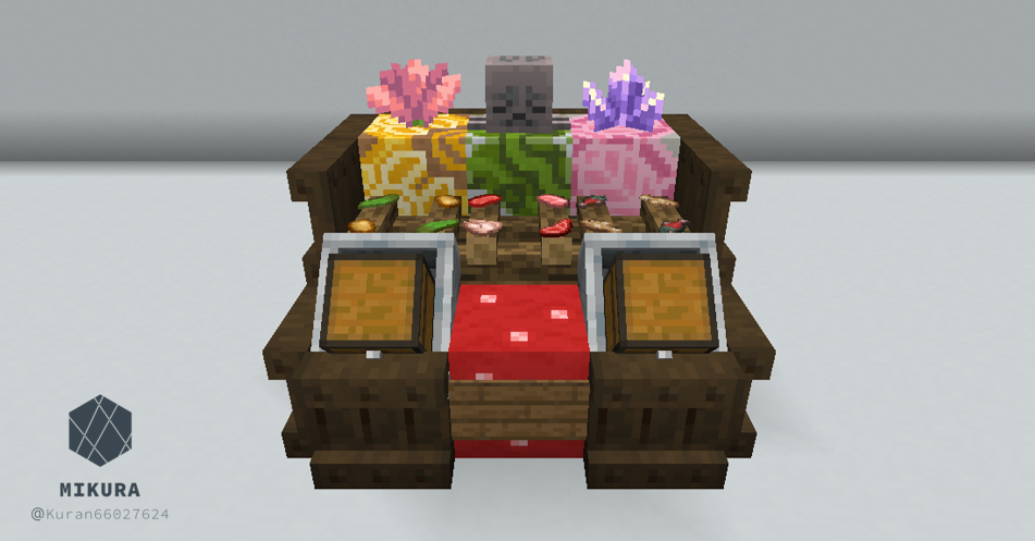 前回作った棚のアイデアはこちらです。【Minecraft】樽とダークオークの棚デザイン