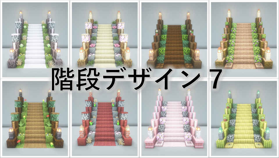 【Minecraft 1.21】ハーフブロックの階段デザイン 14種