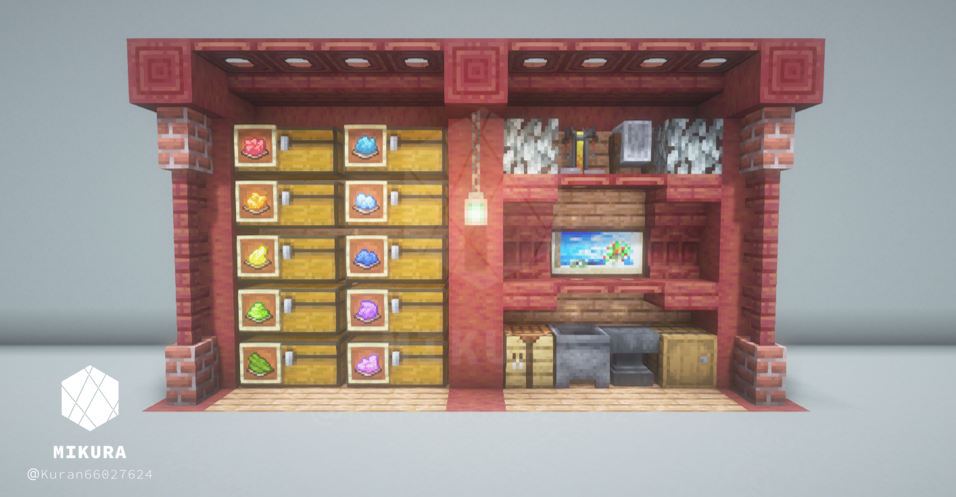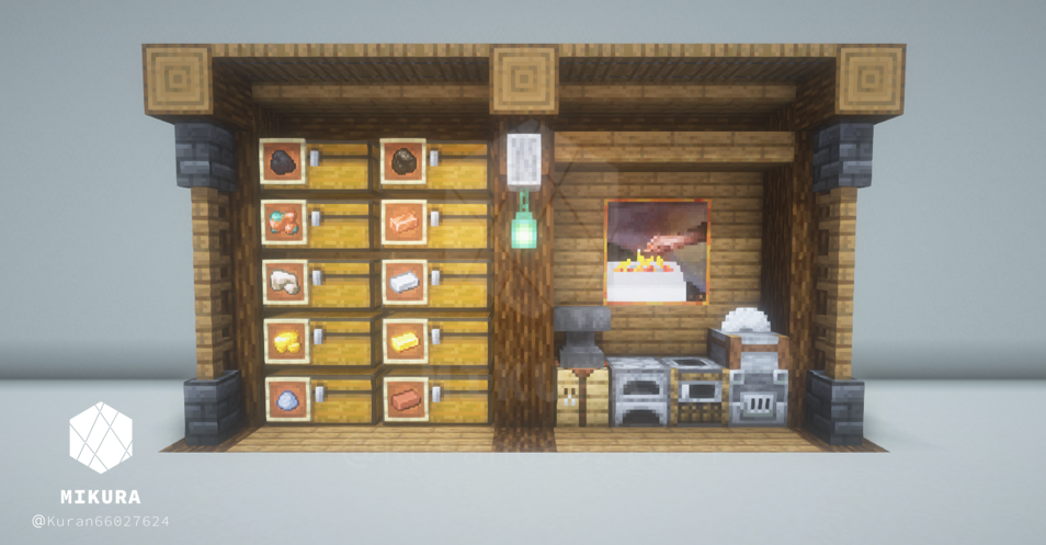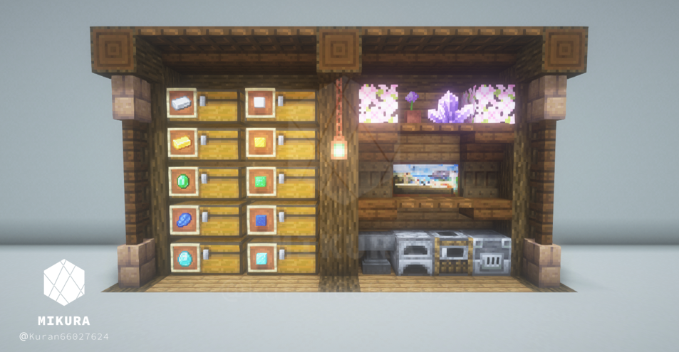 ネザーの収納で使えそうなデザインも作ってみました。こちらのデザインでは、背面に桜の板材を使用しているので引火に注意が必要です。