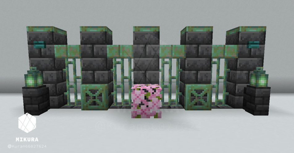 Minecraftバージョン1.21.10で追加された、銅格子をメインに使用した塀のアイデアをまとめました。4種類の塀を色別にご紹介しております。