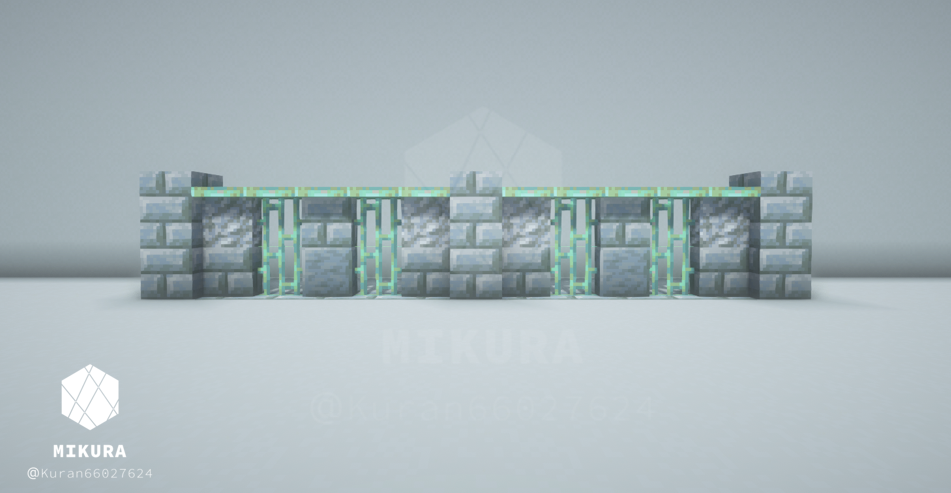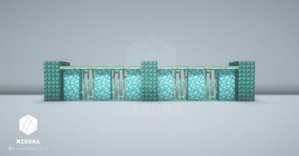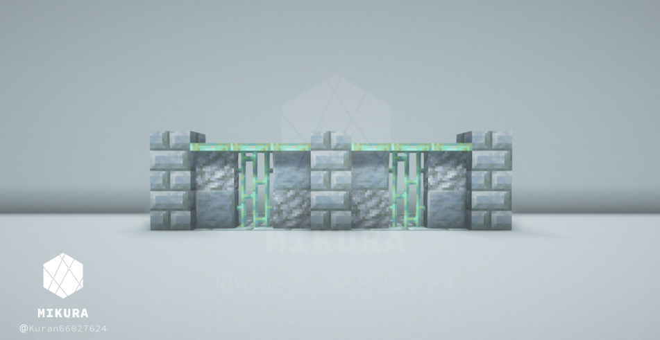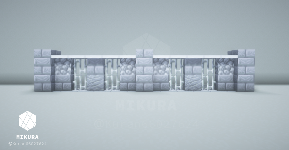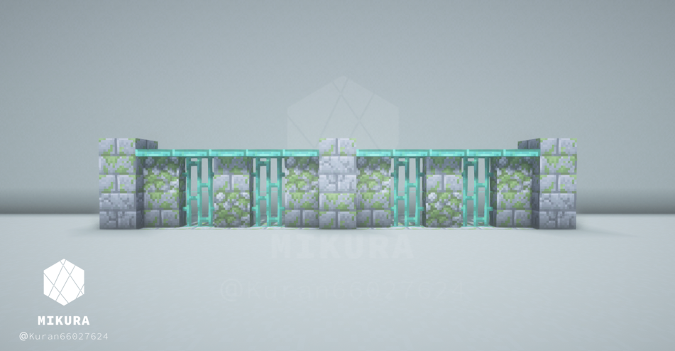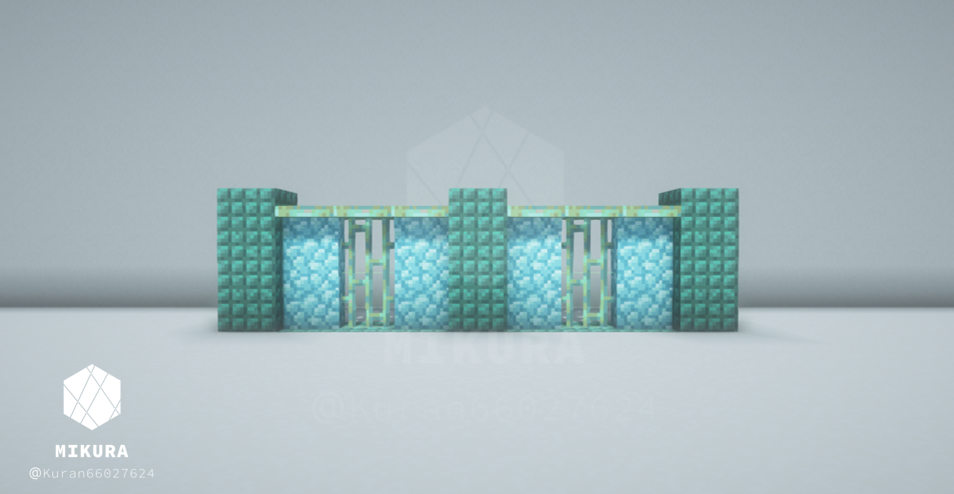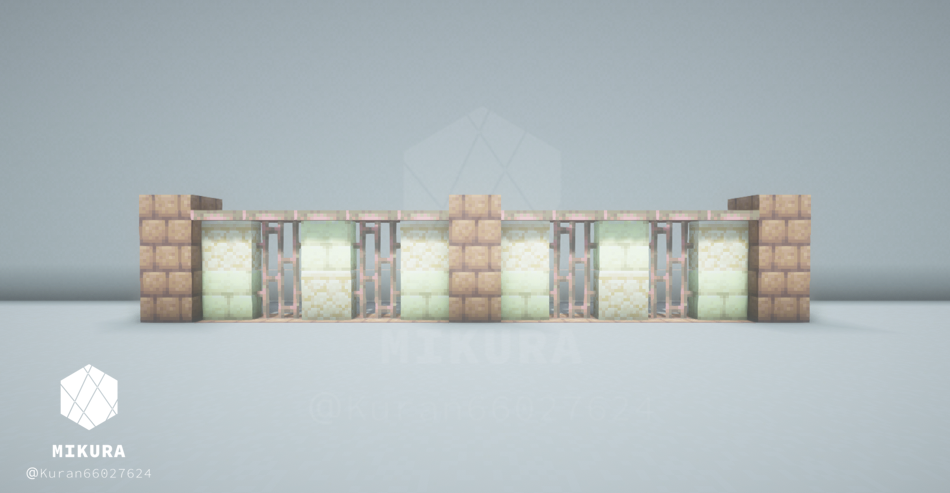 前回作った塀デザインはこちらです。同じく銅格子の塀ですが、今回のものよりも複雑なデザインにしています。【Minecraft】 銅格子を使った塀の作り方