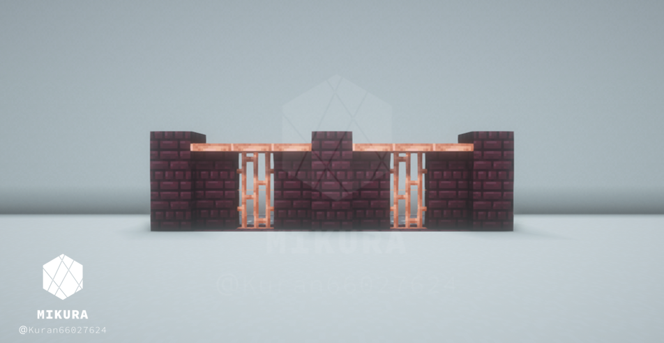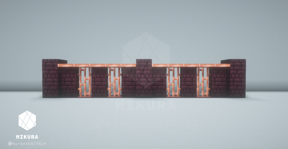 ネザーレンガと銅を組み合わせた塀デザインです。