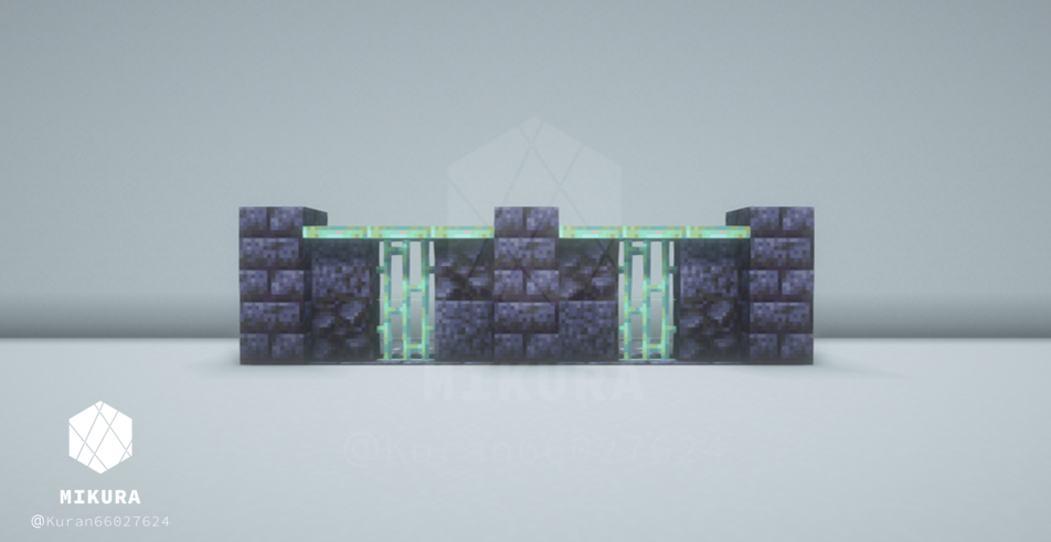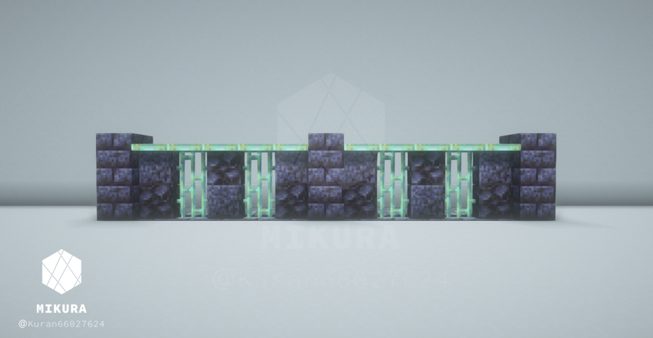 深層岩の丸石・磨かれた深層岩・深層岩レンガ・深層岩タイル・鉄を使用した塀です。